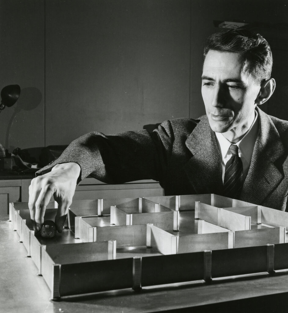 Claude Shannon moving his electric mouse in a maze, ca. 1952. Collection of the Computer History Museum, 102630790.