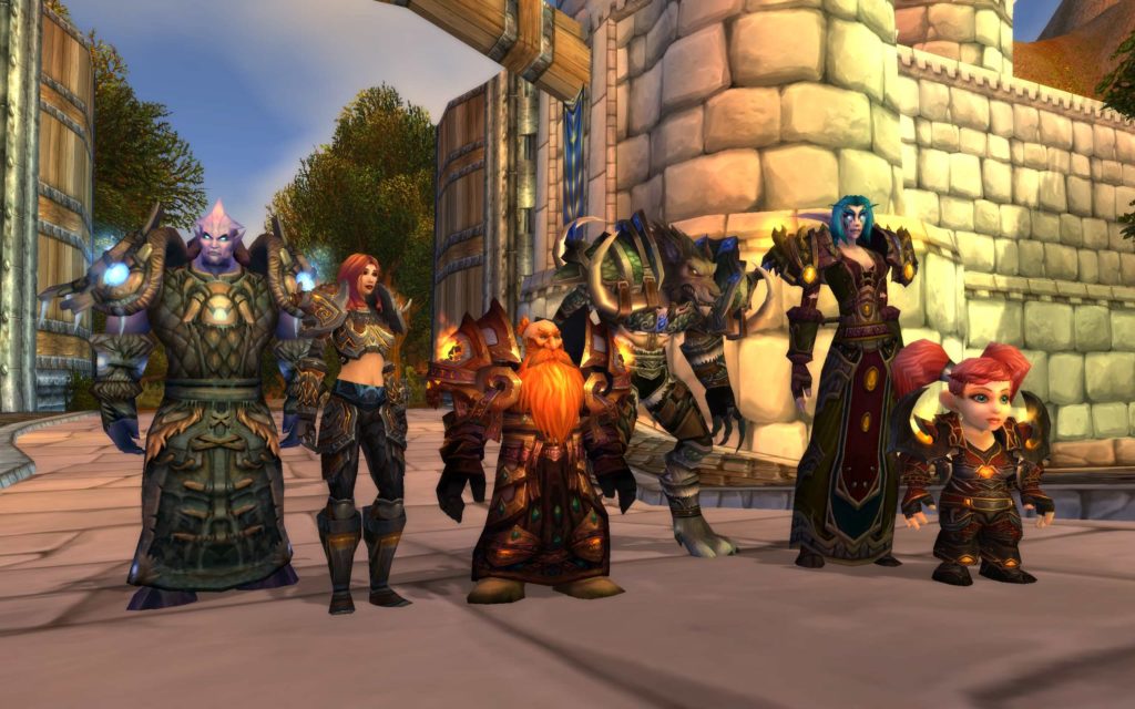 The playable races of the Alliance faction (from left to right): Draenei, Human, Dwarf, Worgen, Night Elf, and Gnome. Artwork courtesy of Blizzard Entertainment and Activision Blizzard.