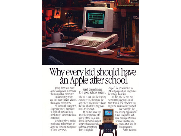 Apple was successful in the school market from the earliest days of the first Apple II. This fourth model in the Apple series was pitched at “preschoolers to . . . college hopefuls.” (1982)