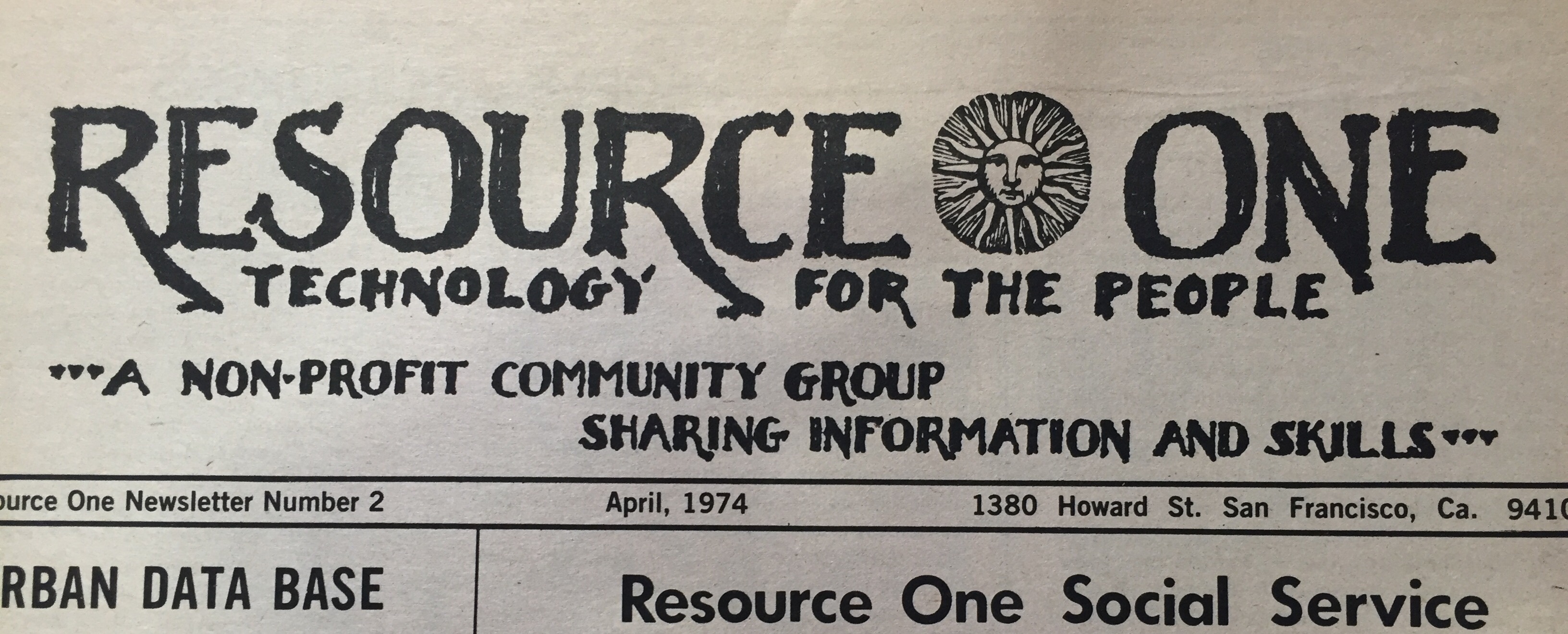 Resource One Newsletter, no. 2, 1974, Community Memory records, Box 12, Folder 16, Catalog 102734421.