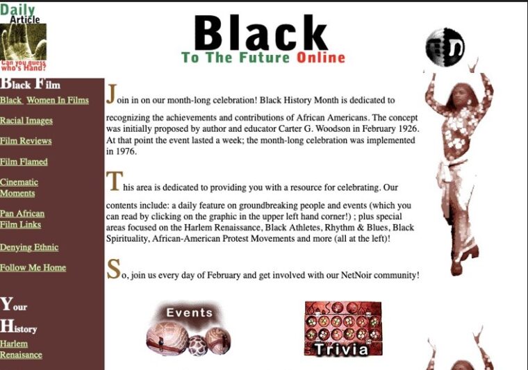 McGuire had just been made Art Director and programmer of NetNoir, billed as “the soul of cyberspace.” The cofounders, David Ellington and Malcolm CasSelle, handled the business end and left much of the content to McGuire and O’Connor. They decided which celebrities to interview, what features to add, and were responsible for coding the site itself. At its height, NetNoir was the most vibrant Afrocentric community online, with Motown Records and Vibe magazine contributing to the music section, Olympic gold medalist Carl Lewis writing on sports, and a range of interactive forums with celebrities. McGuire and O’Connor wrote spotlights like “Technology Month” and “Black History Month.”