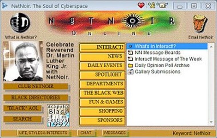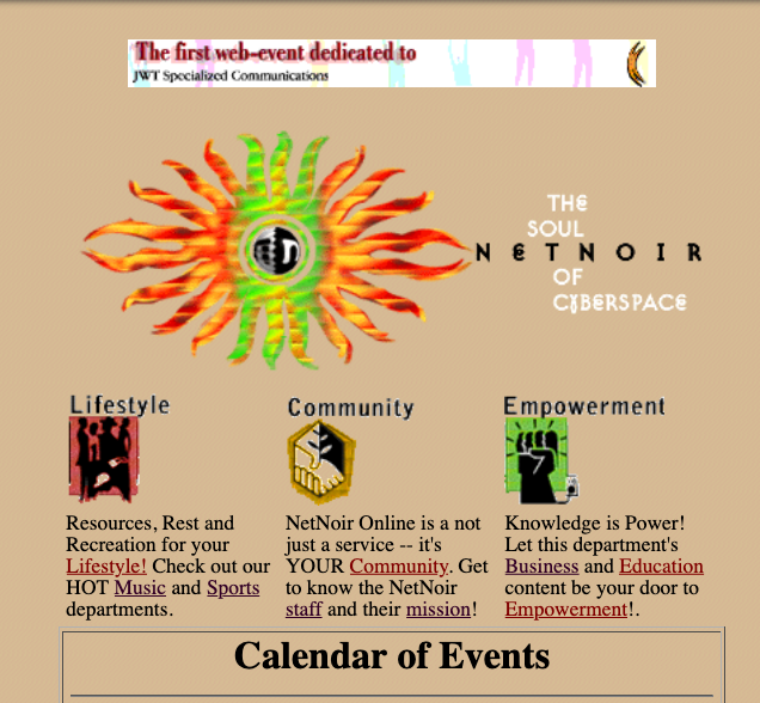 NetNoir started on AOL, which gave it social features that were not common on the web for another decade. McGuire and O’Connor had to become experts in AOL’s own page design language, RainMan. But NetNoir’s web presence was also growing under McGuire’s direction, and there was plenty of opportunity to break new ground in web design.