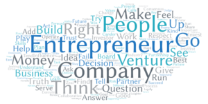 The word cloud below was created from a collection of phrases that thirty venture capitalists used to describe how they see their relationship with entrepreneurs in their oral histories at CHM. It gives greater prominence to words that appeared more frequently. Unsurprisingly, almost every venture capitalist used the words “entrepreneur,” “company” and “people.” But the words that only one or a few of them used reveal several different, sometimes opposite approaches to the founder-funder dynamic. For example, words like “consensus” and “debate,” or “reasoned” and “feel,” indicate different approaches to advising.