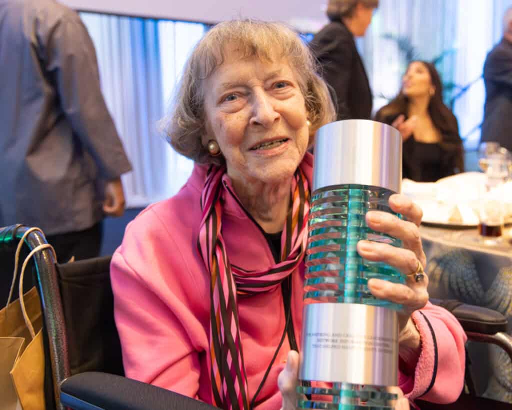 Elizabeth "Jake" Feinler holds her 2024 CHM Fellow Award.