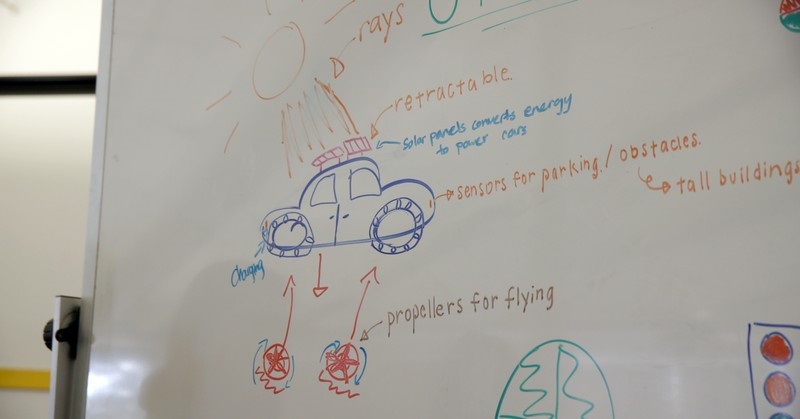 Design the Future encourages participants to imagine what the future might look like, with a specific emphasis on the role of technology. Students think about the changes they hope to see in the future and envision themselves as drivers of that change by designing a technology or product to serve the needs of a target audience. This begins with a discussion of what the world might look like in the year 2040. The Technovation group shared thoughts about how the world might change, anticipating increases in automation, advances in medicine, and other changes in technology. Their ideas about the future then provided a launch point for the rest of the workshop as the girls worked in groups to design a product (robot or autonomous vehicle) for a targeted audience.