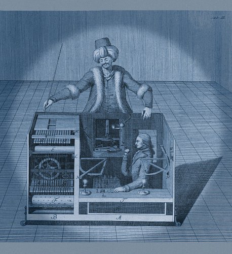 Wolfgang von Kemplen’s chess playing automaton, the Turk, which was operated by a human player hidden inside. Courtesy of the Library Company of Philadelphia.