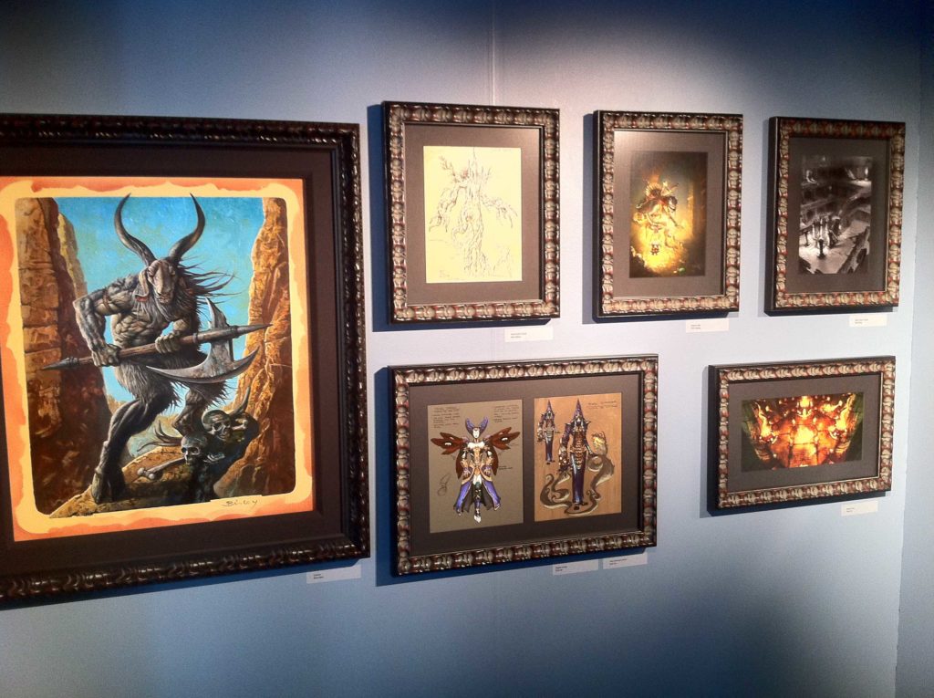 Blizzard Associate Curator Dana Bishop and Producer Michael Bybee greeted us shortly after, and led us to the Blizzard museum display in the building. The walls were covered with concept art, illustrations, and original paintings from Diablo III.